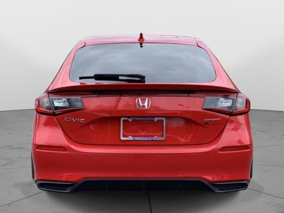 This 2023 Honda Civic Hatchback Sport has a beautiful Rallye Red exterior with Black interior. This vehicle has 25,497 miles has been thoroughly inspected by our factory trained service technicians and has been fully reconditioned for immediate delivery. We're happy to provide this Civic Hatchback's CARFAX vehicle history report upon request as well.