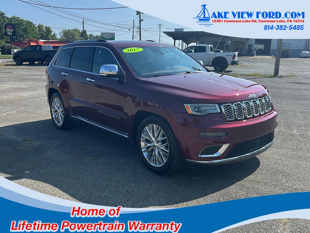 This 2017 Jeep Grand Cherokee Summit has a beautiful Velvet Red Pearlcoat exterior with Black/Dark Sienna Brown interior. This vehicle has 138,000 miles has been thoroughly inspected by our factory trained service technicians and has been fully reconditioned for immediate delivery. We're happy to provide this Grand Cherokee's CARFAX vehicle history report upon request as well.
